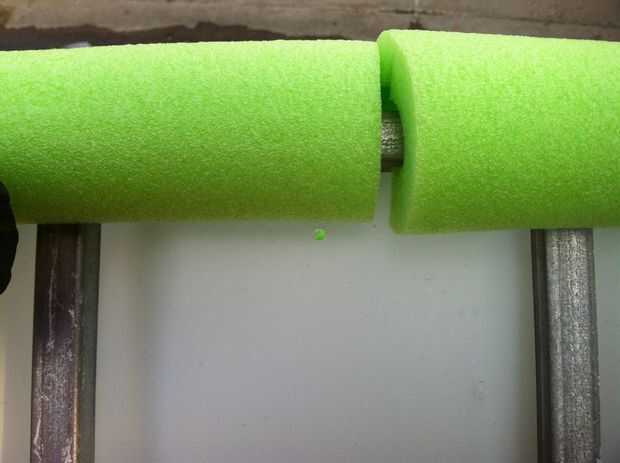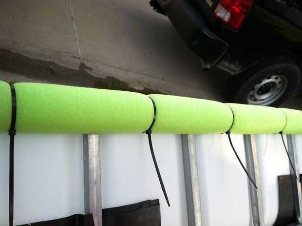 Ejecutar los lazos zip a través de los agujeros, asegurándose de que la "cabeza" de la brida está en el exterior de la piscina. Cinche lo bastante apretado, pero no tan firmemente que usted comience a cortar en la espuma.