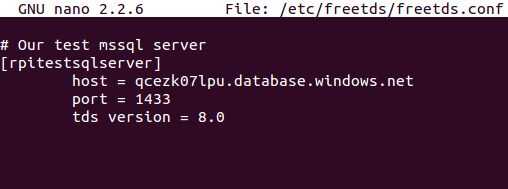 [rpitestsqlserver] host = qcezk07lpu.database.windows.net port = 1433 tds version = 8.0