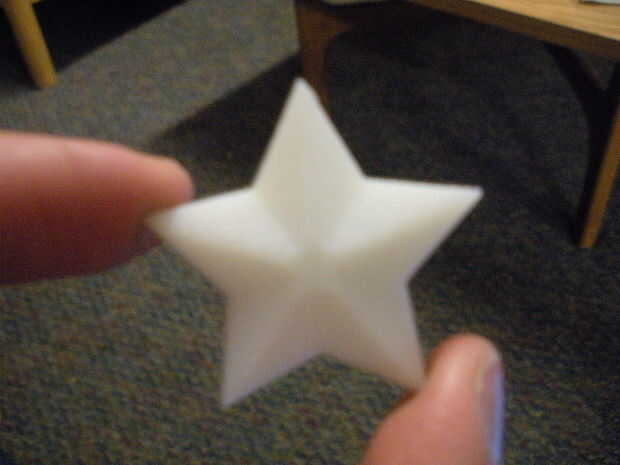 Una vez que han impreso sus estrellas 3D y el material de apoyo ha sido eliminado completamente usted ahora agrandará los agujeros en la parte posterior de las estrellas para que el bulbo del LED se adapta perfectamente. Cuidadosamente usando un cautín, trazar los bordes del agujero en la parte posterior de la estrella. Lo que esto hará es fundir lentamente el material de la estrella se hace de y así agrandar el agujero. Hacer este paso para ambas estrellas. ADVERTENCIA: Asegúrese de que usted no permita que el soldador tocar cualquier otra parte de las estrellas. También, para evitar hacer daño a tu soldador, limpie la punta cada pocos segundos.