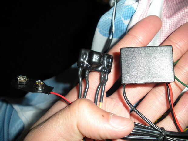 Nota: En este paso usted va ser soldadura 3 tres cables juntos: el plomo viene del relais y los dos cables positivos provenientes de los conectores de presión.
