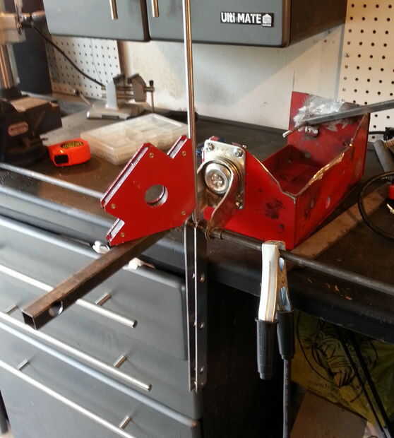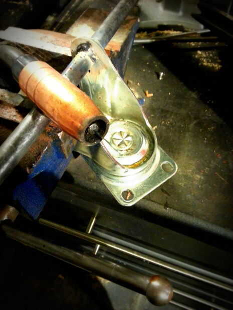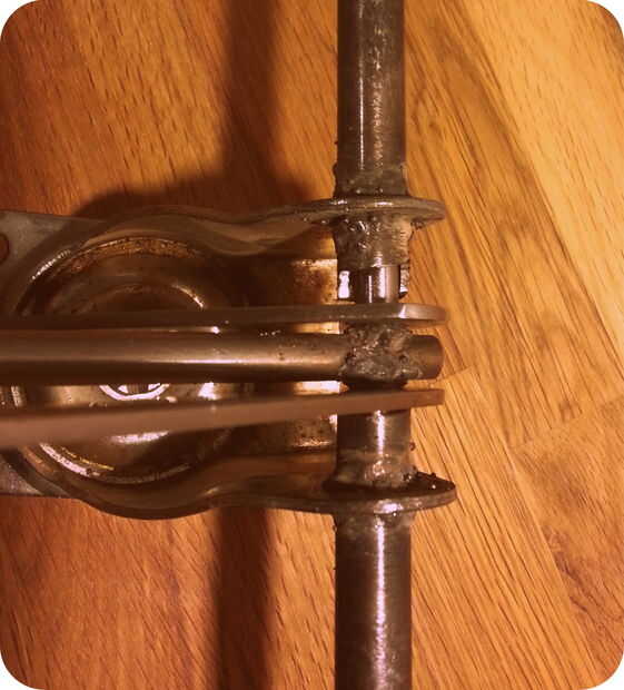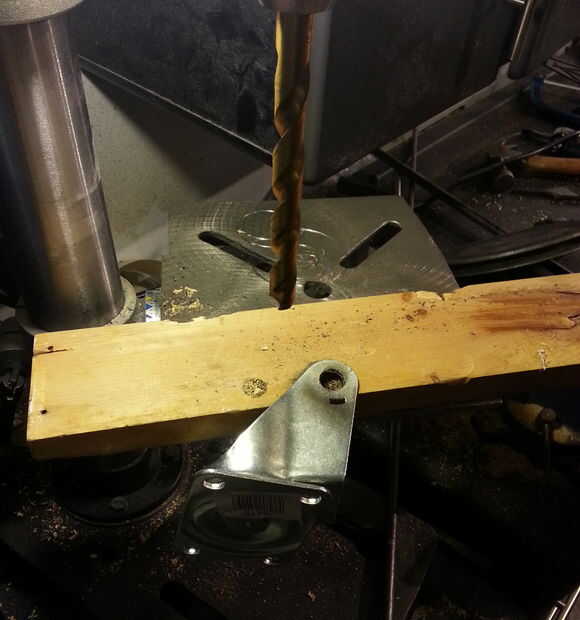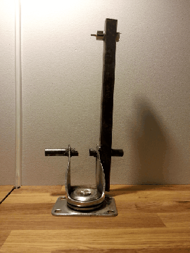 Para crear la barra sobre la cual se cuelgan los espejos, inicialmente soldado con autógena bulones de la parrilla de Ikea en uno de los ejes (fácilmente podría hilo los ejes de soporte de espejo en cada extremo, esto parecía demasiado endeble). Finalmente he elegido usar una sola barra sólida, sin embargo tuve que suelden atentamente el "eje de vector normal" dentro de la brecha de 2cm, asegurando al mismo tiempo es perfectamente perpendicular. Ahora tienes el mecanismo apoyo básico para los espejos. El eje sobresale de la parte delantera es su bisectriz en 3D y los espejos será instalar perpendicular (en ambos ejes) a este huso.