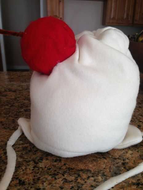 3. Vuelva el sombrero y marcar donde quieres que las pestañas de oído. Su aletas de oído con pegamento caliente o mano les cose en el.