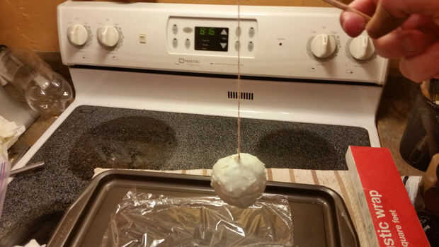 Como fan de Firefly y un fabricante de helados, yo quería recrear el Planeta de hielo que río encuentra problemático para comer. Para aquellos que no han visto el show, un planeta helado es un postre hecho de helado, suspendido de una cuerda unida a un palo. VI algunas variaciones en línea, pero vino con mi propia versión. Mi versión tiene una trufa de chocolate, la superficie de concha de chocolate blanco, subsuelo helado.