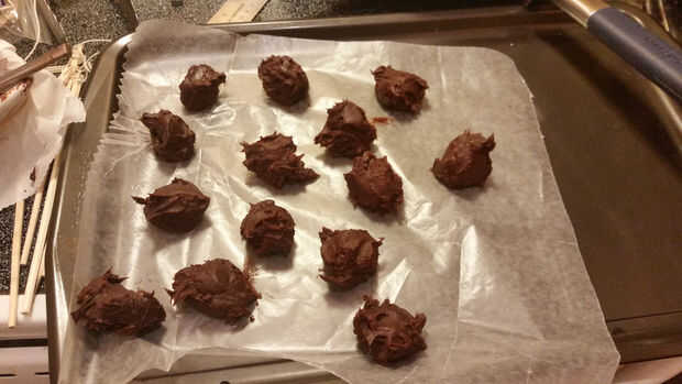 3. cucharada de chocolate sobre una bandeja forrada con papel pergamino y volver a la heladera durante 30 minutos.
