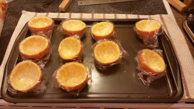 En este momento pegué mi primer problema. Cuál es la mejor manera de montar esto y crear una esfera de helado. Miré alrededor de la casa para cualquier cosa usar como molde y me decidí por naranjas.