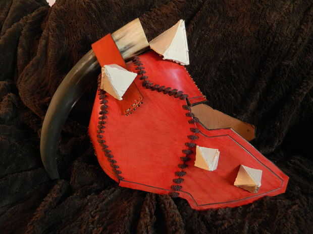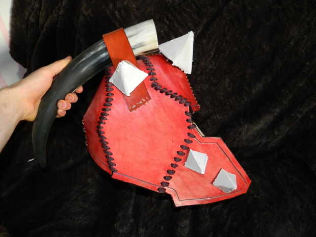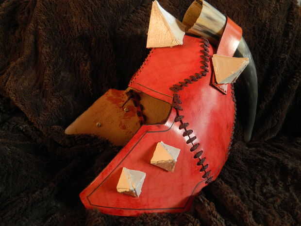 Este casco de cuero endurecido es ideal para representando ferias renacentistas y accidentalmente asustar a los vecinos. Este tipo de casco es bueno porque no requiere grandes trozos de cuero o piezas de espesor uniforme, por lo que puede ser hecho d