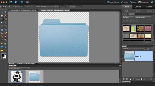 Importar tus imágenes en Photoshop Elements. En lugar de copiar y pegarles, vaya a archivo -> abrir, para abrir los archivos. Si copiar y pegarles no podría obtener la resolución completa y la transparencia.