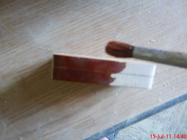 te recomiendo la tinta para madera y has hallado en al mayoría de cualquier color. Dar más capas y luego limpie con un paño de algodón suave.