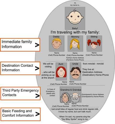 Lo que decidí imprimir era dependiente en el viaje. Fotos etiquetadas son la información más importante! Con cámaras digitales modernas y software de publicación, esto es muy fácil de incluir y es lo que hace este mono ID tan útil. Uso de fotos claro y característico de cada persona, asegurando la identificación.