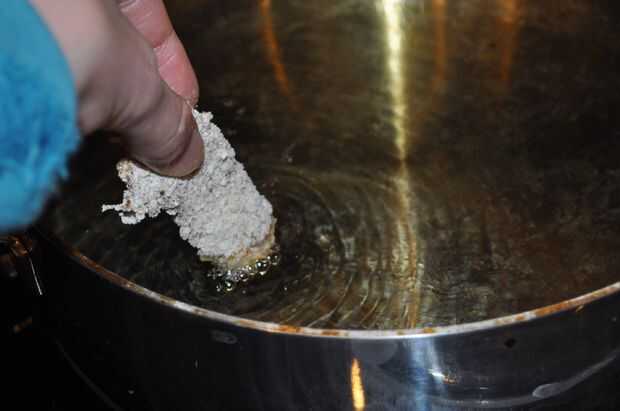 Si freír en una sartén gire calor alta med y temp del aceite medida con termómetro de alimentos.