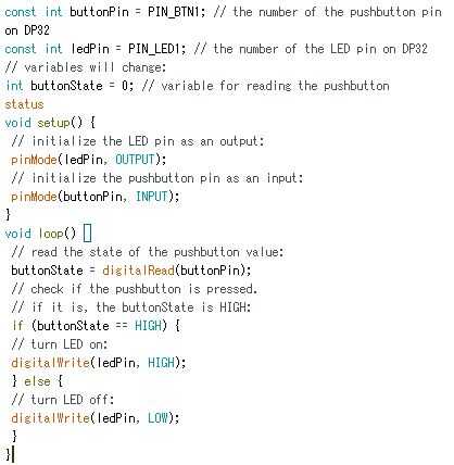 Desde que asumió el nuevo uso de Arduino, vamos a empezar nosotros código básico y luego hecho un poco más complejo. El siguiente código es una simple pulsación de un botón y un LED se encenderá.