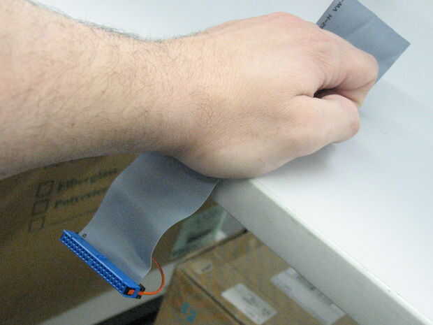 A menudo, cables IDE son un agrupados desastre, debido al almacenamiento o abarrotar en bahías polvoriento. Para aplanar sus marcadores hacia fuera, apriete entre el borde de una mesa de escritorio y el talón de la mano y, a continuación, lentamente tire de ellas hacia abajo, aplicando una presión firme con el talón de su mano. Después de cada extracción, voltee el cable y páselo a través otra vez. Después de cada golpe, el cable será rizado estupendo, pero después de varios golpes (5-10), va a ser rizado y torcedura-libre. Acabado tirando del cable entre tu dedo índice y medio para deshacerse de los rizos.