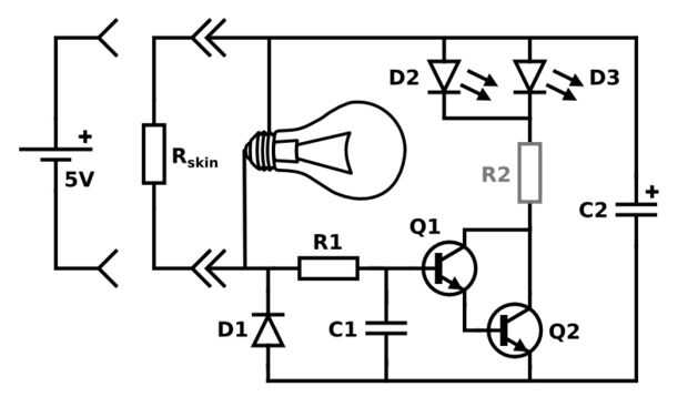 Pregunta siguiente: ¿Cómo encender la luz? En "Misterioso foco broma" proyecto el LED fue impulsado cuando ambos contactos en la base de la bombilla fueron cerrados por el anillo del dedo. Me gustaría algo más elegante. Resistencia de la piel!