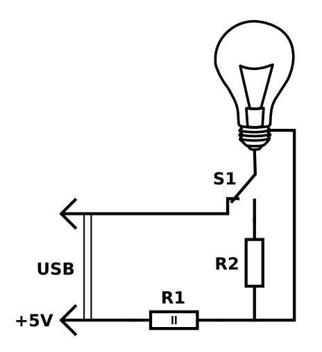 El titular también tiene algo de magia. Debe cargar la bombilla y debe encender. Francamente, encender el interruptor significa cortar la energía del USB y 1 MOhm resistencia de conexión a la base de la bombilla. En este caso la fuente de alimentación es supercapacitor dentro de la bombilla. Y cuando el interruptor está apagado la carga de inicio de supercapacitor.