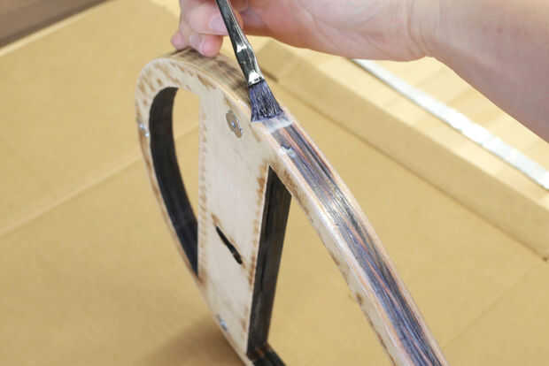 Aplicar cemento de contacto a lo largo de la arista exterior de la estructura de madera donde se montar la tira de LED.