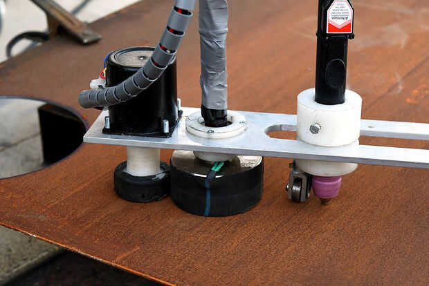 Esta notable herramienta utiliza un electroimán de 12 voltios que es capaz de levantar 100 kg con el fin de garantizar la estabilidad de la herramienta en la placa del hierro. Por lo tanto, nuestra herramienta permanece estable en la placa de hierro y una pinza gira alrededor del imán estable con ayuda del motor.