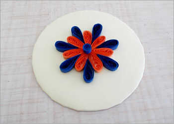 Ahora toma un cartón circular y pegar las bobinas de gota en forma de lágrima en una flor como patrón con el pegamento.