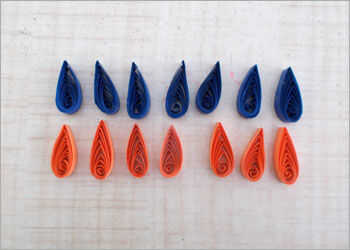 Hacer múltiples lágrima caída en forma de bobinas en colores naranja y azul.