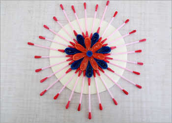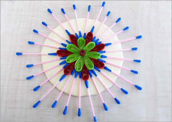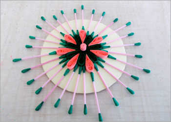Preparar el cartón circular 3 base de la misma manera, usando bobinas de gota en forma de lágrima en combinaciones brillantes y coloridos audífonos.