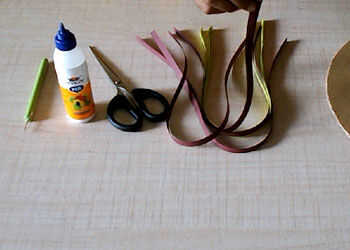 Tomar una tira marrón y aplica pegamento en uno de sus extremos. Ahora pega la tira de color verde sobre él uniendo los dos.