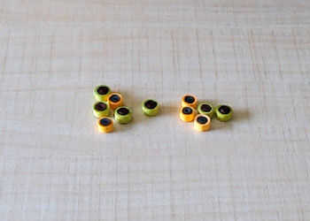 Tomar las bolas blancas thermocol y cortarlas a la mitad del centro con la ayuda de la herramienta de corte y pegar en el círculo cerca de las bobinas firmemente.