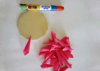 Tomar una medida de 5 * 4 cm en el papel rosa y un marcador y recórtalo.
