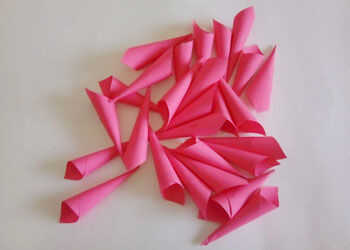 Empieza a doblar y rollo de papel en forma cuadrado para hacer un cono. Hacen múltiples conos de papel como esta como se muestra.