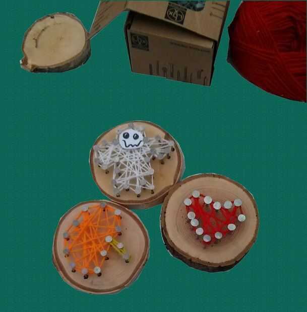 Como muestra, coloque las uñas en forma de la silueta de la imagen - como por ejemplo en la forma de un fantasma, el corazón o la calabaza. Después de usted conecte los clavos con la lana.