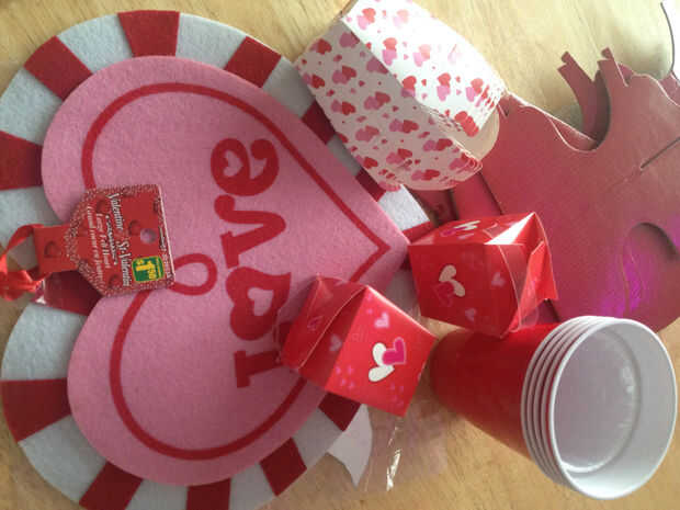 Por lo tanto tengo tazas de color de rosa/rojo/de San Valentín día, platos, servilletas, horquilla etc