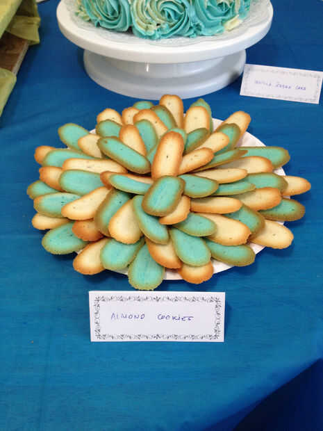 Galletas almendra, algunos son azules y algunos son regulares (chat de lengua/lenguas de gato)