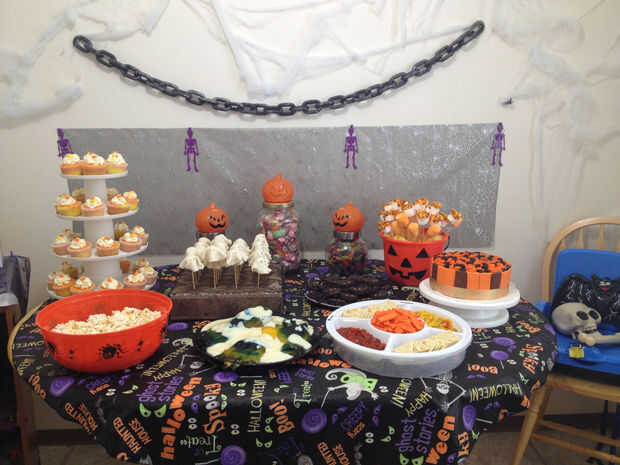 Frascos de caramelos - compré 1 frasco de vidrio alto y 2 pequeños frascos de vidrio del almacén del dólar que luego decorado con calabazas miedosas plástico 3, caliente pegado a la tapa de los frascos. Bastante simple, pero muy bueno también para la decoración de la mesa. Los caramelos/chocolates son comprado de tienda.