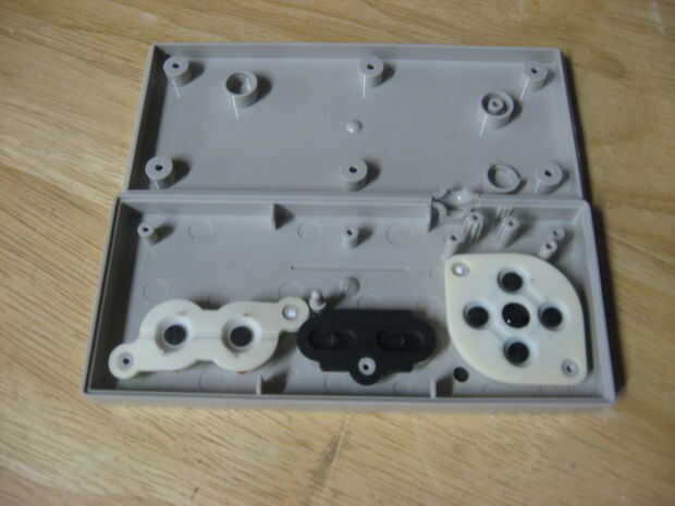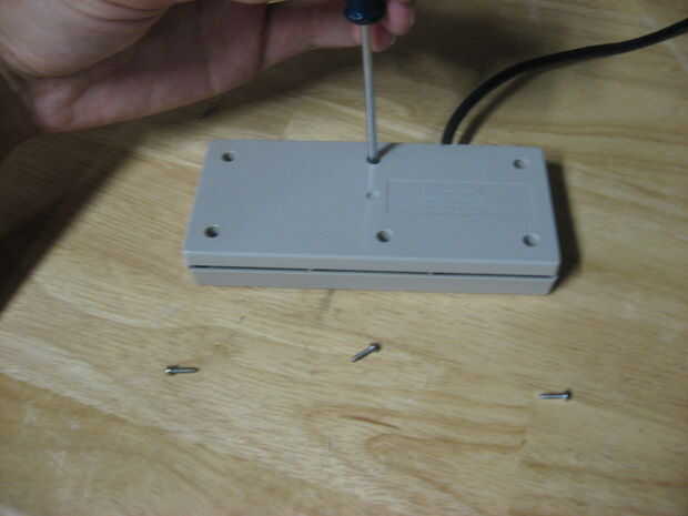 Primero apagado es necesario abrir tu controlador, mediante 6 tornillos de cabeza Phillips pequeño. Después de quitar la parte de atrás debe encontrar un circuito muy simple, quitar esto y dejar de lado, será un soporte para los botones de más adelante. También tienes que quitar los botones y sus piezas de contacto de caucho.