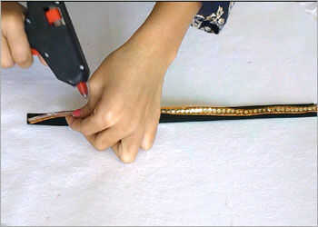 Tome una tira de papel de color de 2 cm de ancho negro como necesaria para la cesta.