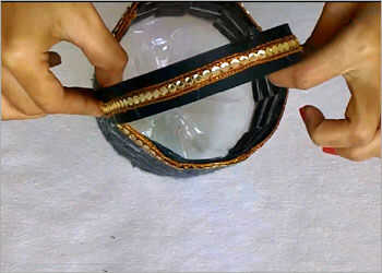 Pegar cordón decorativo en él y pegarlo en el borde de la canasta, con una pistola de pegamento.