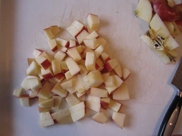 Al final, picar la manzana en trozos de 1 pulgada, dejando la piel en.