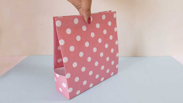 Ver el tutorial para aprender a hacer el DIY bolsa de regalo de papel fácil.
