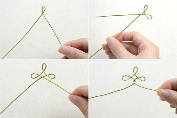 2 º, el primer lazo del doblez en el centro del alambre y ajuste ligeramente hasta una forma ovalada;