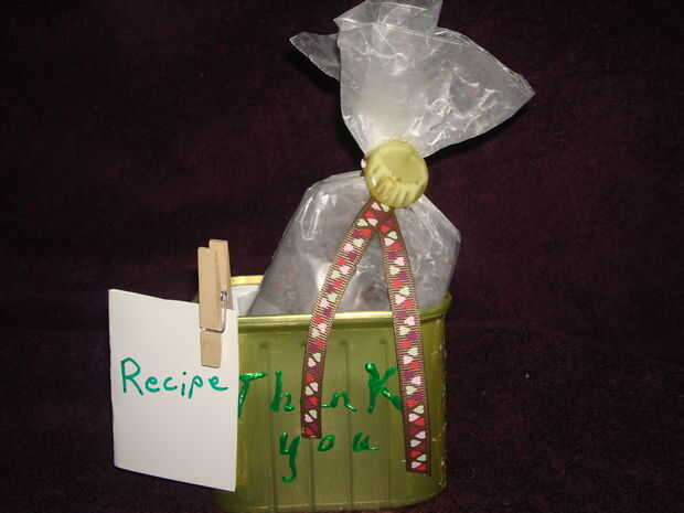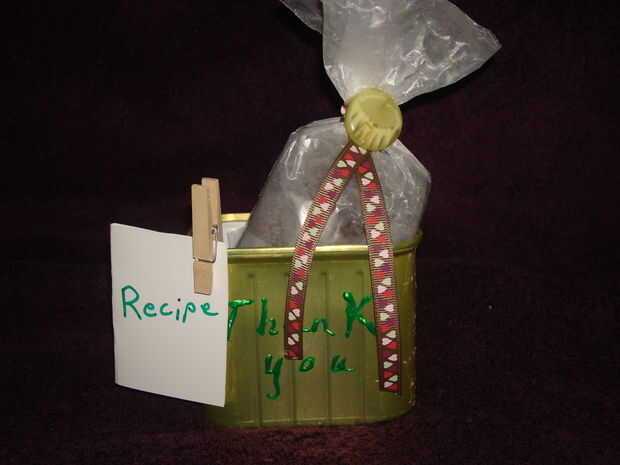 Envolver el pan en papel de cera y atar una cinta alrededor del mismo y pegar el botón.