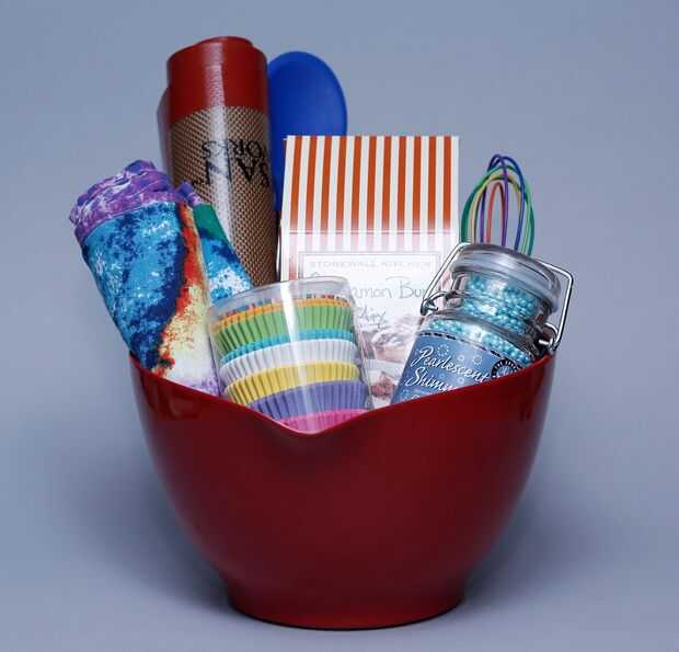 Este podría ser mi favorita canasta... está pensada para hornear! Ideal para bodas, duchas o universitarios incluso mudarse a su primer apartamento, es inusual y útil. Pongo todo en un tazón de fuente que pueden utilizar una y otra vez. Artículos en la cesta son; silicona para hornear hojas (hace cada cacerola antiadherente), una cuchara y bata, una toalla de plato, Magdalena, mezcla de la hornada y hornada decoraciones.