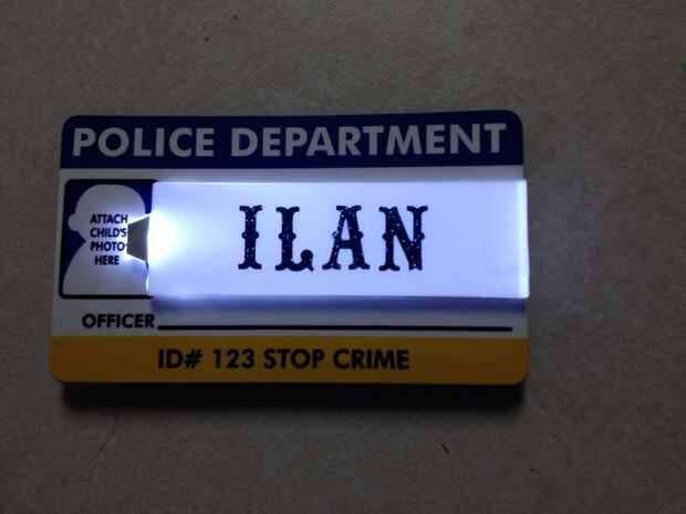 Soy scotch cinta el módulo LED en la etiqueta de nombre plástico con el traje. Pongo dos pequeños agujeros en la etiqueta de nombre plástico para permitir pasar los conductores positivos y negativos a través a la parte posterior de la etiqueta de nombre. Entonces estoy usando un soporte de batería de botón CR2032 conmutado para alimentar. En este ejemplo, utilicé hilo conductor para hacer los accesorios de cableado.