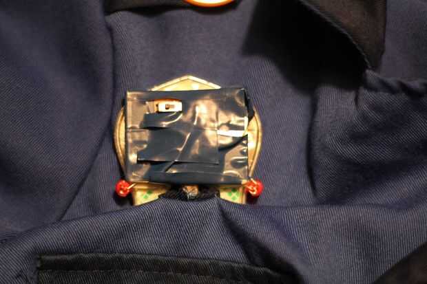 Por el momento, supongo que el lector sepa cómo hacer un circuito de Blinky-Blinky. Aquí estoy utilizando piezas de un Radio Shack (IC Temporizador 555 1 mega y 1 resistencias del ohmio de k condensador de tántalo de 1 uf, mini interruptor de encendido, tablero de PC) para hacer un circuito blinky con dos estándar 5 mm de LED rojo. Estoy usando una batería CR2025 de poder. Cinta doble cara espuma conecta el circuito a parte posterior de la placa.