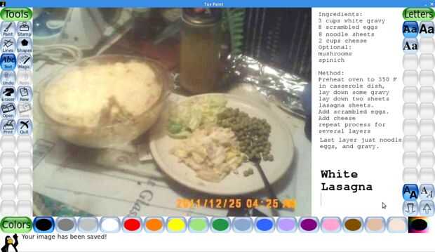 Paso 11: Tuxpaint uso para hacer tarjetas de recetas.