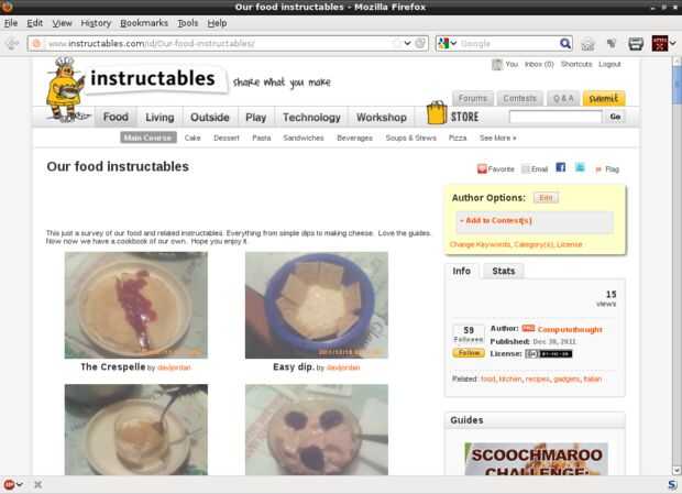Puede utilizar su motor de búsqueda favorito para buscar posibles recetas que excitan a tu paladar. Puede hacer búsquedas simples en cosas tales como geek "recetas". Por supuesto que desea buscar sitios tales como forgeek recetas. o incluso puede intentar nuestro instructables para distintas recetas.  .  Hay sitios web Geek que tiene secciones de recetas que son especie de escondido, esperando a ser encontrado. (ieThe linux link tech show http://tllts.org/wiki/index.php?n=Main.TLLTSCookbook la lista sigue y sigue.