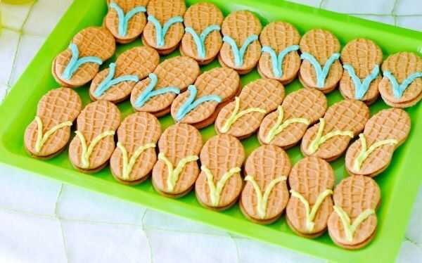 Flip Flop Cookies: Haz a algún chalado galletas y glaseado. Todo lo que hacemos es dibujar dos líneas en las galletas de nutter con hielo para hacer el flip flop correas! Listo, es así de simple!