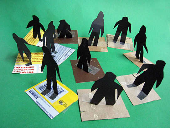 Prep: paquete de 6 tarjetas para cada estudiante. Corte ranuras en una carta en cada pila. Estudiantes cortando el resto de las ranuras de las tarjetas de otros mediante el uso de la primera carta como guía. También, crear personitas de silueta que se utilizará para indicar la escala de los modelos.