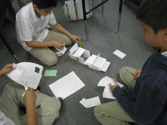 Estudiantes recortar tarjetas de conector y discutir otras necesidades de la comunidad marquesinas pueden abordar. Los estudiantes comienzan a montar sus estructuras en equipos mientras exploran cómo las distintas formas de conector crean apoyo y diferentes ángulos.
