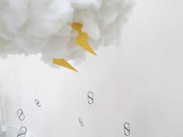 Si la sensación te golpea, añadir algunos relámpagos a la supertormenta. Cortar un papel amarillo en relámpagos y pegamento o amarrar en su nube. Añadir una barra agradable de color allí y es bastante divertido.