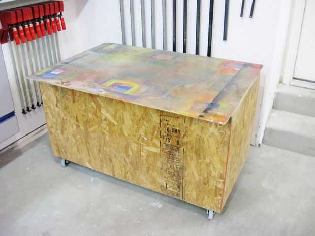 Rueda alrededor en las ruedas y es increíblemente útil ya que tiene las mismas dimensiones exactas como la mesa de rodillo desde el último paso. A menudo utilizo estas dos en conjunto para pegamento-ups, acabados, y cuando más quiero una gran superficie cuadrada, pero baja para trabajar en.