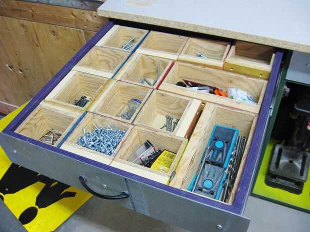 Uno de los cajones ahora tiene todas las casillas de hardware que hice para este instructable (desde que reorganizó todo mi espacio de pared que tenía que ir, por desgracia).