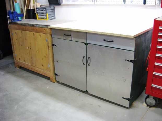 Construí un segundo gabinete utilizando el mismo diseño básico como uno para la mesa de salida, pero con dos cajones de extensión completa en mejores y más grandes bahías abiertas abajo.
